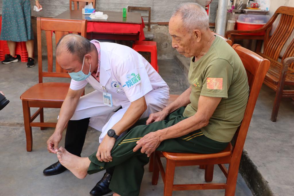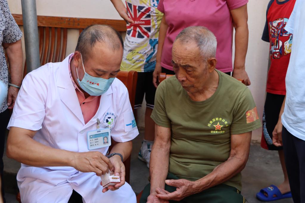 7月25日,bat365在线官方网站平台师生与一附院专家团队一道,顶着烈日高温,历经3小时车程,来到罗定市泗纶镇,上门为抗美援朝老英雄沈金水送医送药。